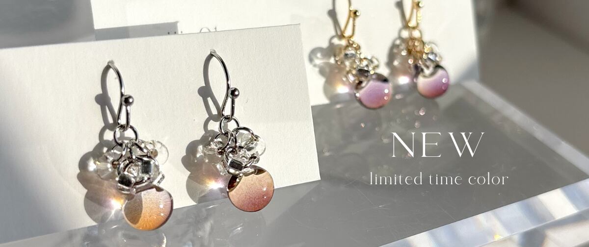 大人気アンジュールシリーズからなんと!冬限定カラーの登場! 春夏秋限定カラーは販売開始すぐに完売してしまい、今でも再販の声をいただくほどの人気! 今回の冬限定のカラーも期間限定での販売です♡ 冬の静かな夕暮れと街にきらめくイルミネーションが溶け合うような透け感のあるニュアンスカラーのビーズをメインに、ガラスビビーズを合わせて、冬のきらめきをぎゅっと詰めこみました♡ 30mmと長めのチェーンを使用しているため、揺れるたびキラッと輝き神秘的な雰囲気を演出してくれます。 ニュアンスカラーのビーズは、職人さんによって1粒ずつ塗装されていますので、色の出方に個体差があり、いろんな表情を見せてくれます。 【size】全長約58.1㎜(金具含む ※ピアスの場合) 【価格】税込3,850円(税抜3,500円) ▼注意事項 ✳︎商品について、ハンドメイド商品ですので、細やかな傷などがある場合がございます。 写真の写り方で、色や見え方が違う場合がございます。