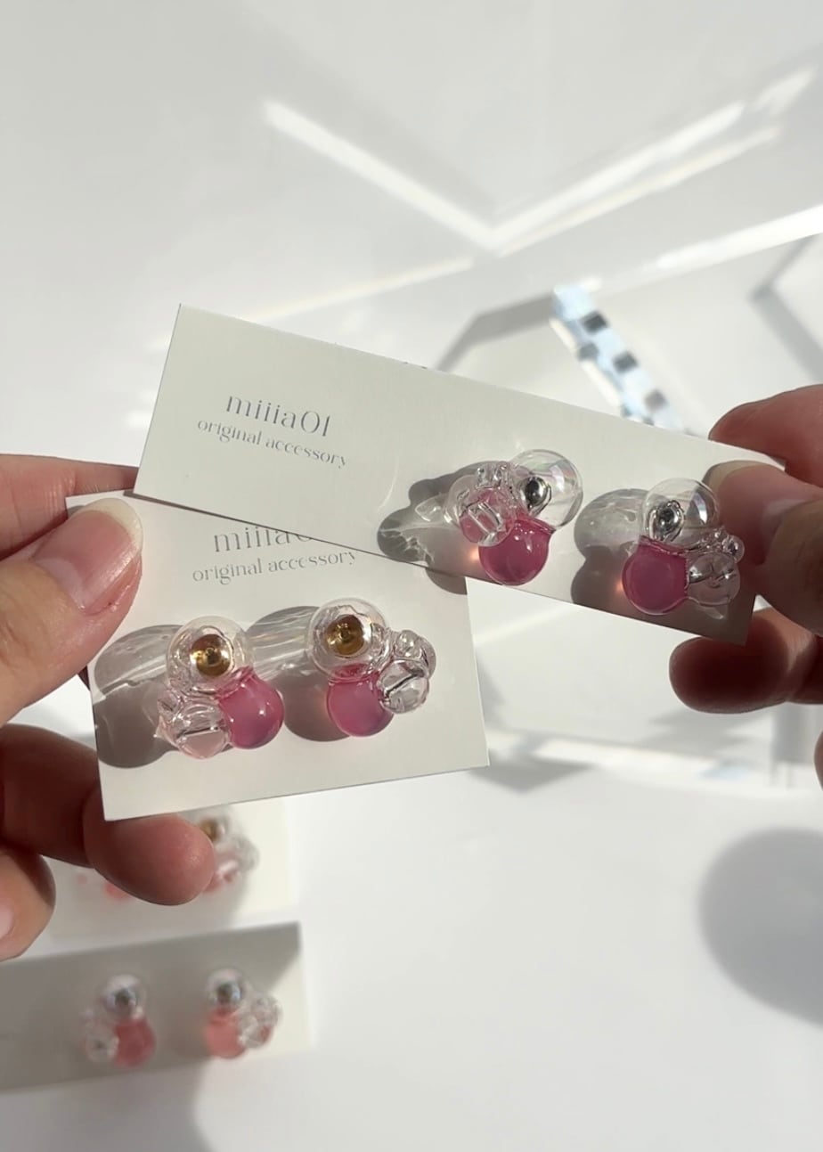 “うるうる”と“ちゅるん”を閉じ込めたような質感が魅力の、miiia01オリジナルアクセサリーです。