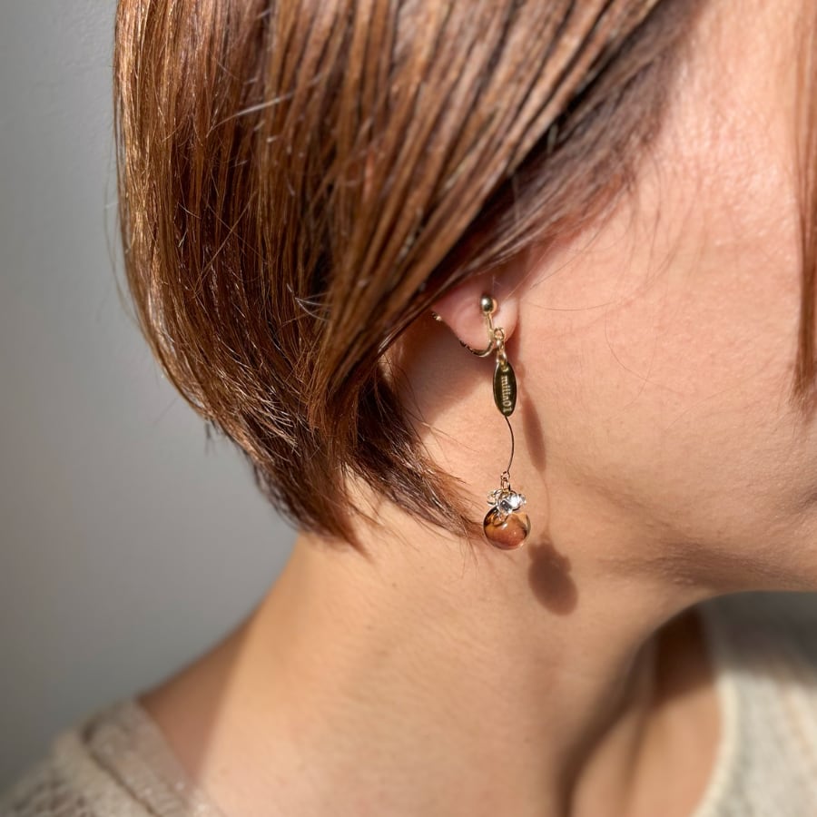 やわらかくカーブしたラインと、とろけるような秋カラーのガラスビーズが組み合わさって