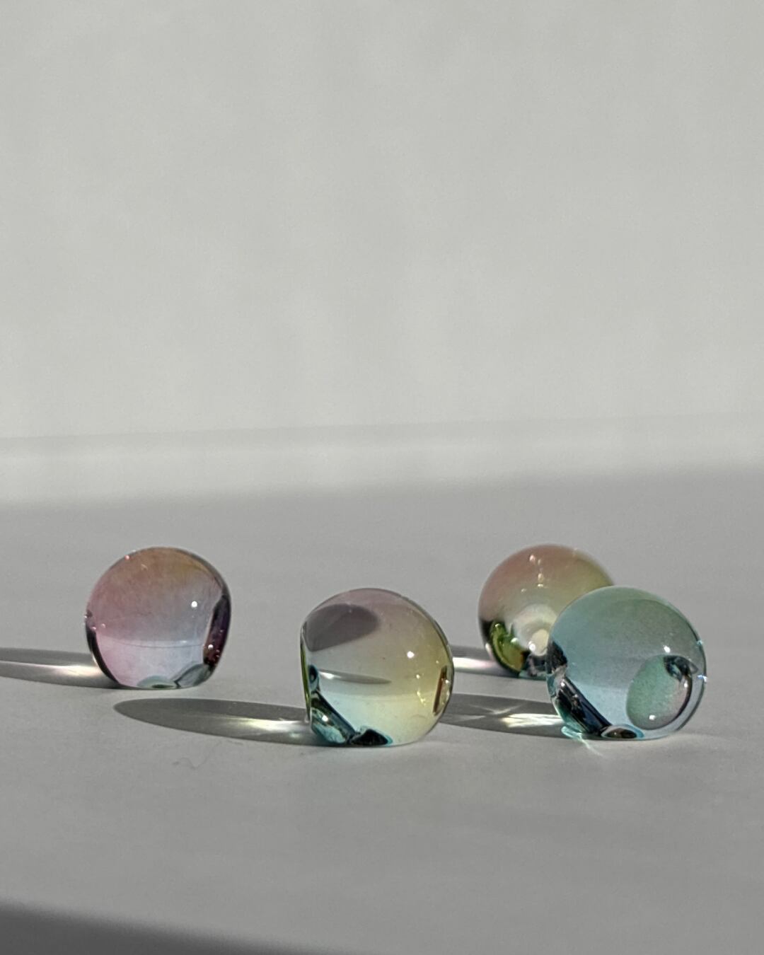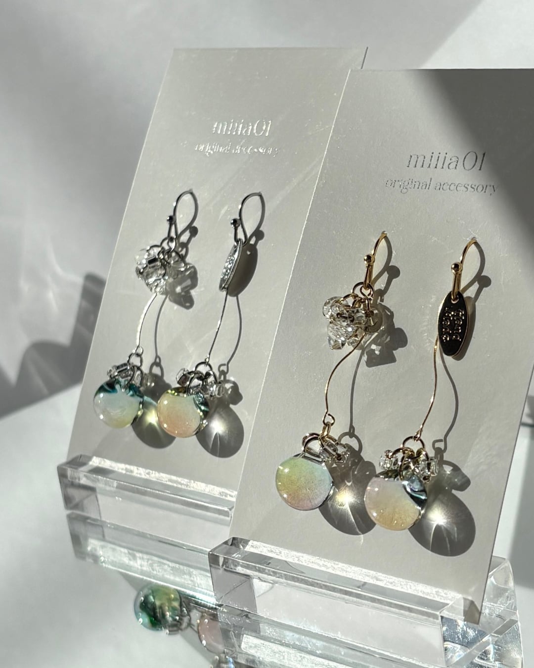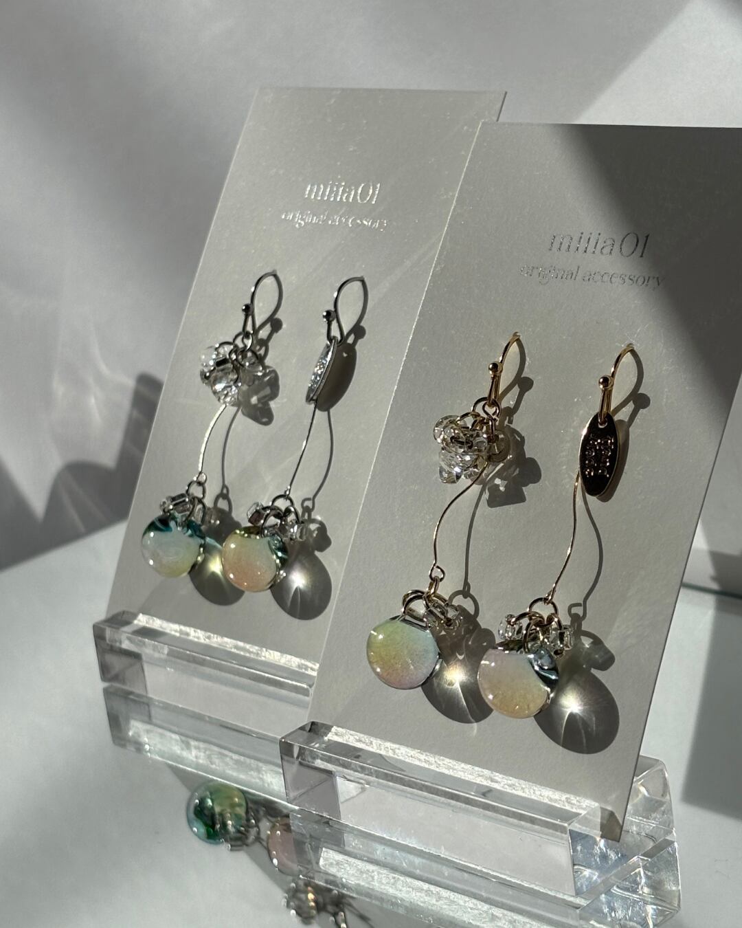 やわらかくカーブしたラインと、とろけるような春カラーのガラスビーズが組み合わさって、歩くたび視線をふわっと惹きつけてくれます!